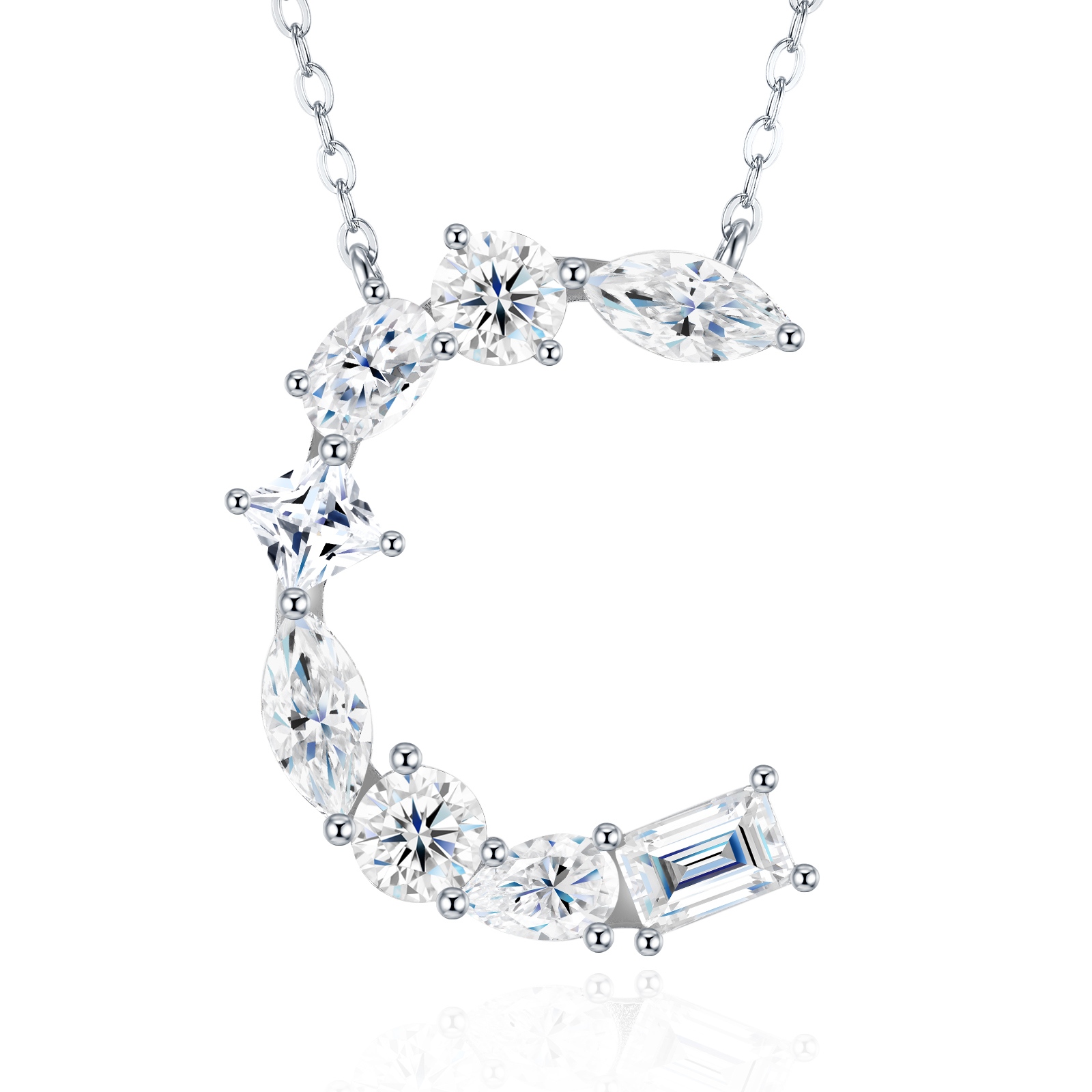 26-Letter - C - Luxury Silver Necklace Featuring Top-quality Moissanite D Color VVS , Made Of S925 Silver Electroplated With Platinum.