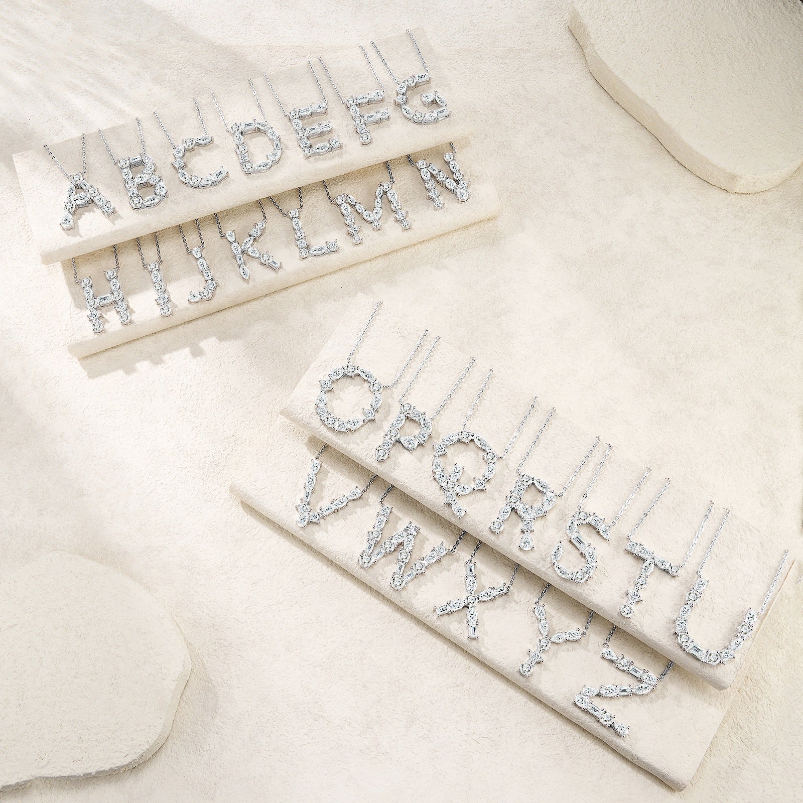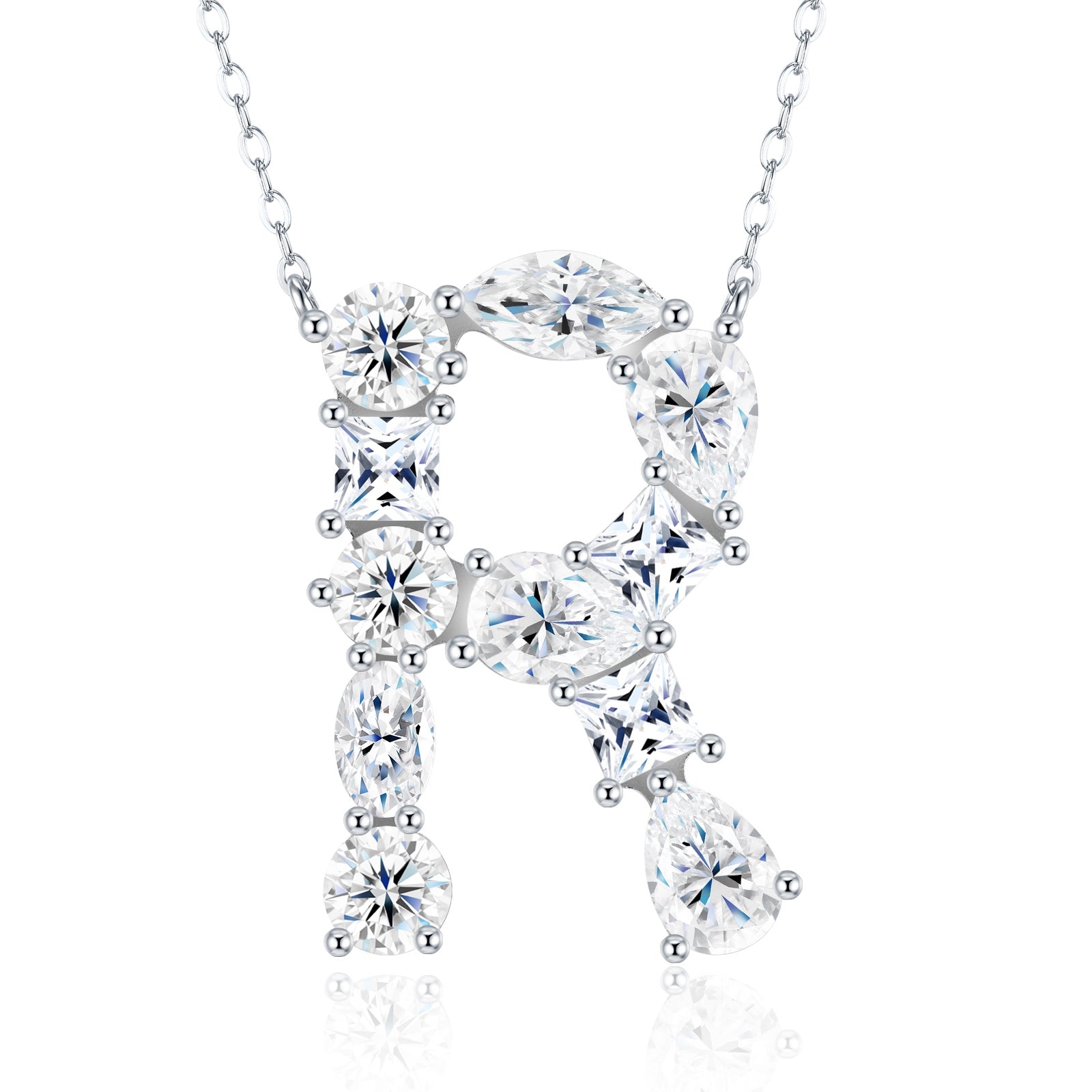 26 Letter - R - Luxury Silver Necklace Set With Top Moissanite D Color VVS, S925 Silver Plated Platinum