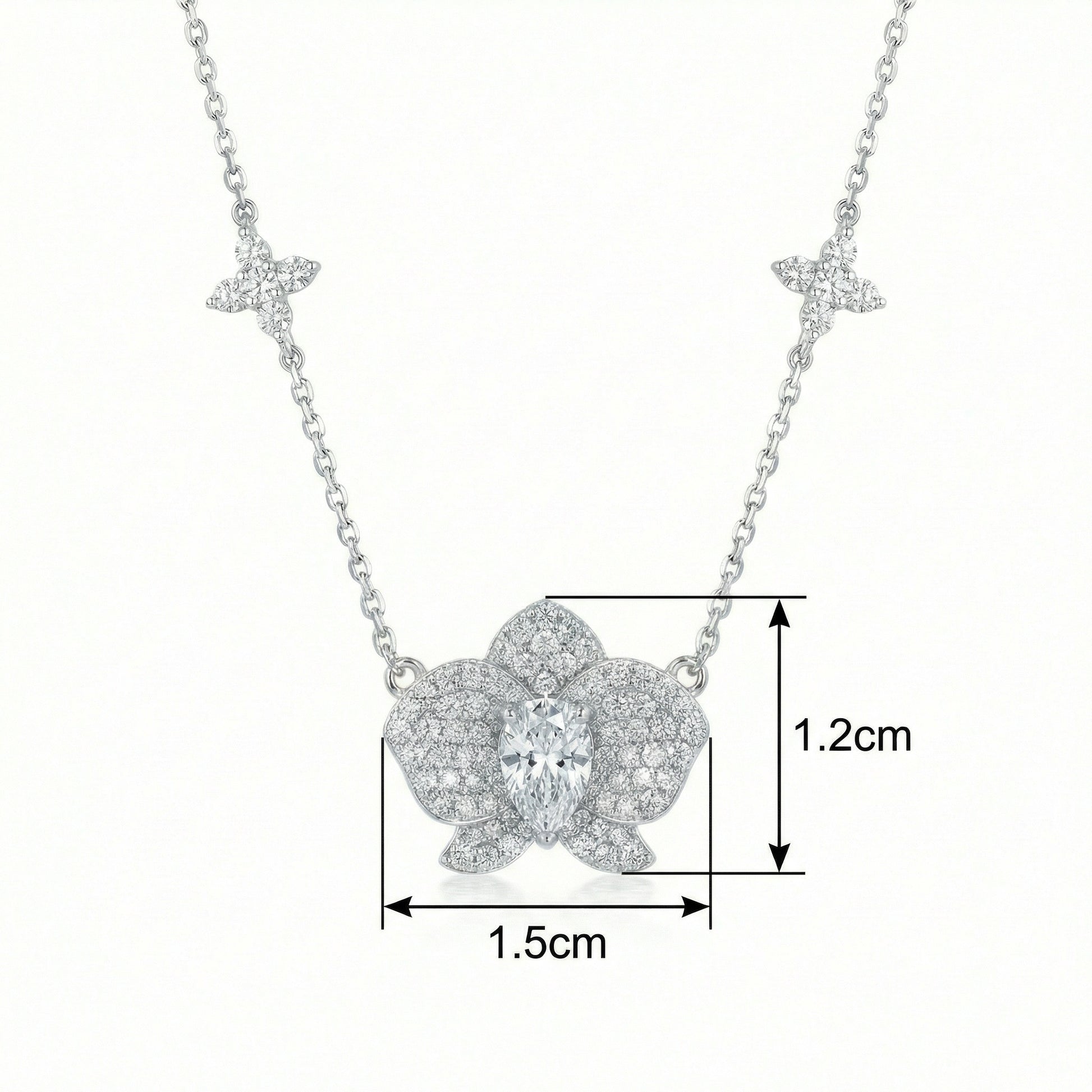 925 Sterling Silver Elegant Diamond Orchid Pendant Necklace with Pear-Cut Center Stone