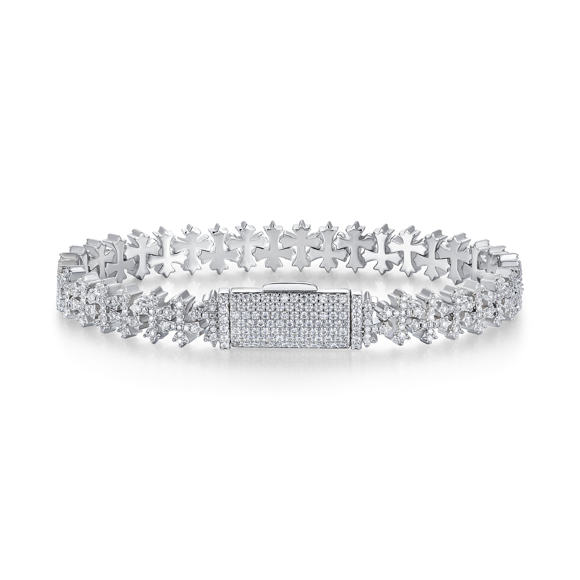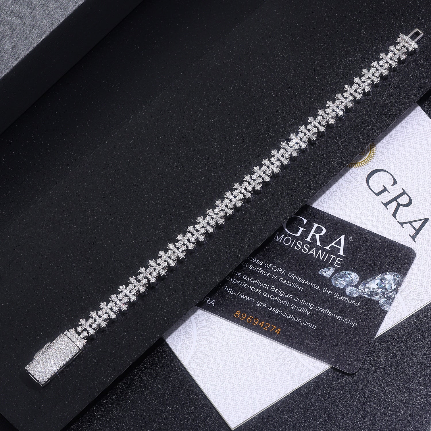 Luxury Silver Bracelet Featuring Top-quality Moissanite, Made Of S925 Silver Electroplated With Platinum.