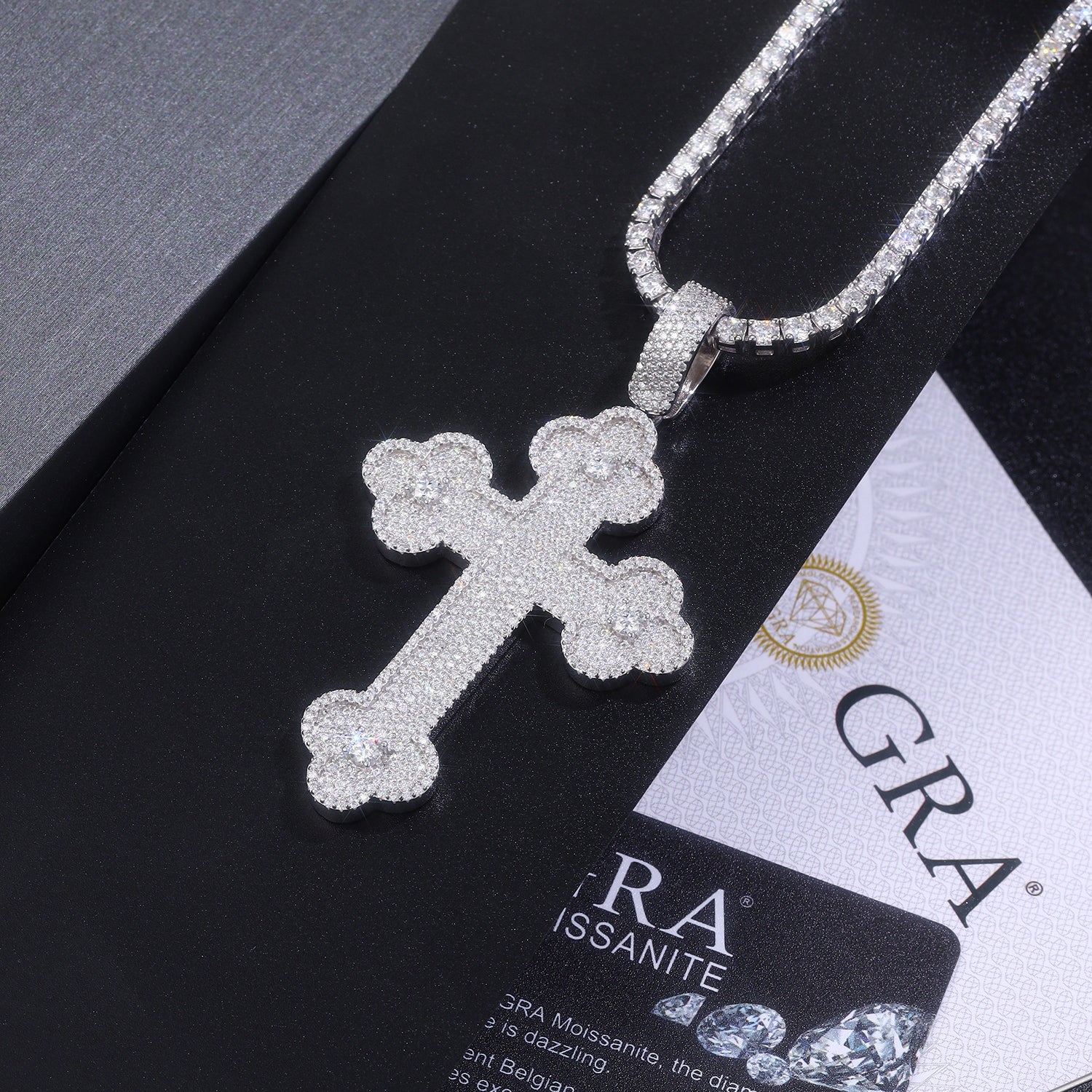 Luxury Silver Necklace Featuring Top-quality Moissanite, Made Of S925 Silver Electroplated With Platinum.