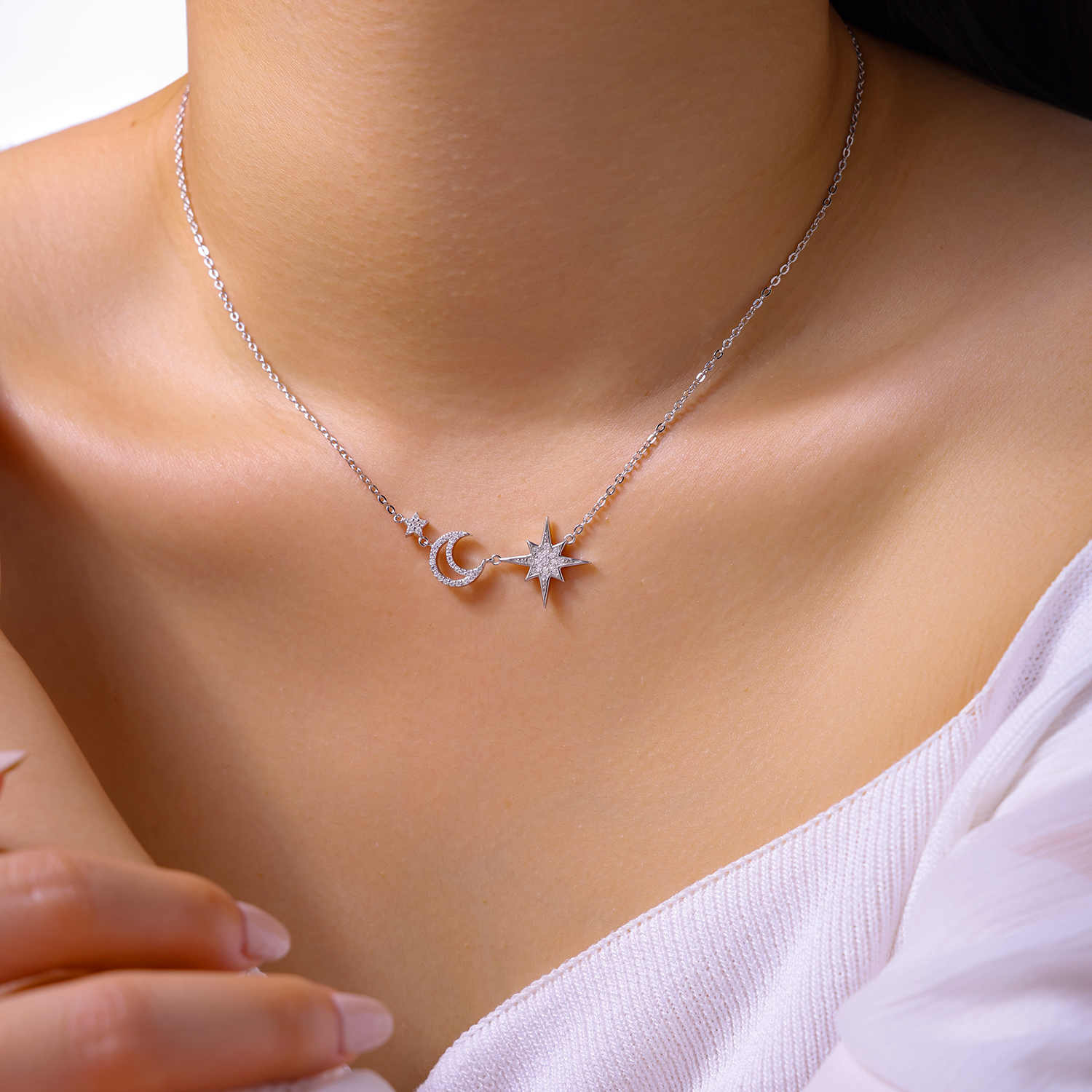 Luxury Silver Necklace Featuring Top-quality Moissanite, Made Of S925 Silver Electroplated With Platinum.