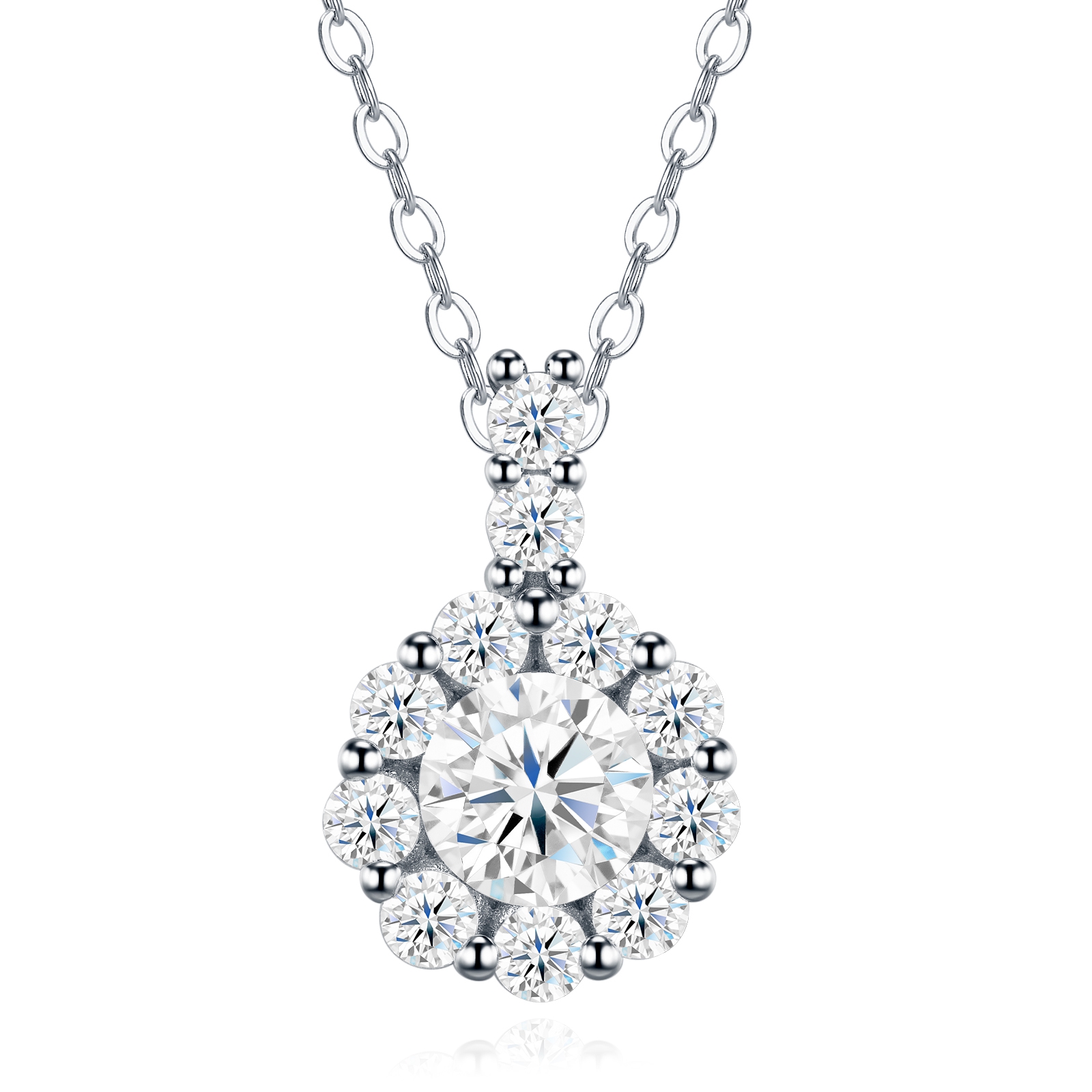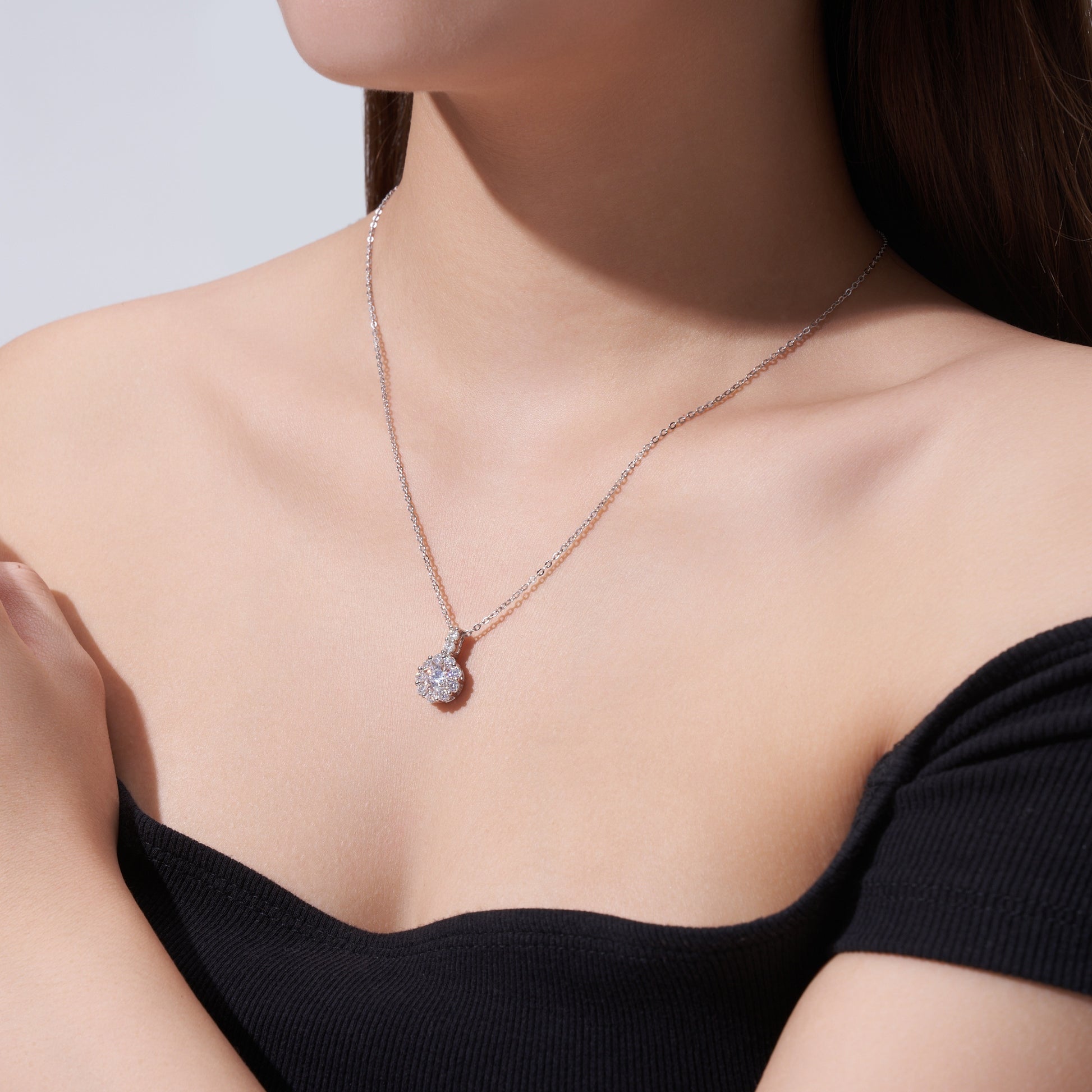 Luxury Silver Necklace With A 1-carat Top-quality Morganite D Color VVS, Made Of S925 Silver Electroplated With Platinum.